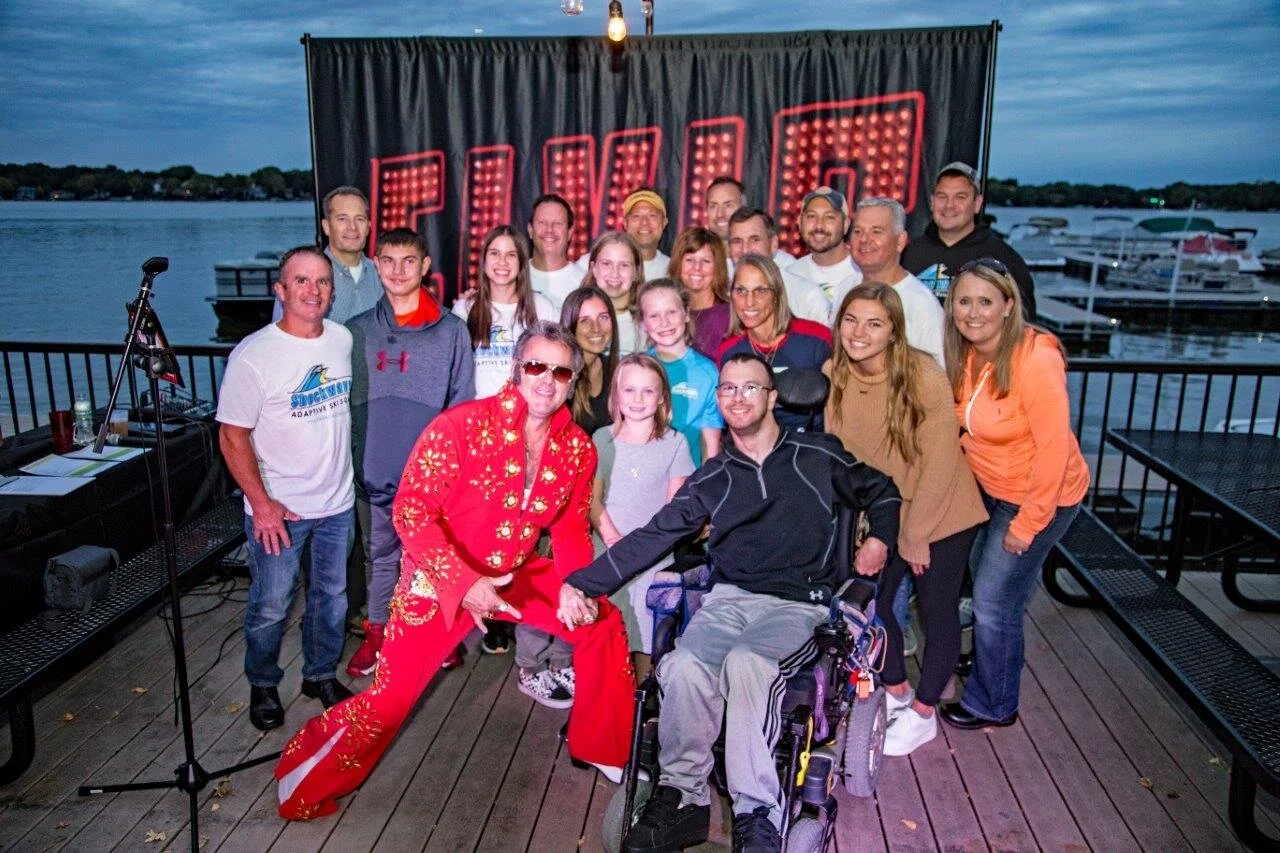 PLA Elvis Event and Fundraiser for Adaptive Ski Raises $14,122! Many Thanks to everyone who attended the Elvis Event for adaptive ski and donated money/purchased raffle tickets! Special thanks to Kevin Burkart for his generous Florida vacation donation and for the donors of the other raffle items. The raffle brought in $6111 and this numbers was MATCHED by the Northern Tool and Equipment. Charlie’s donated another $900 and the PLA an extra $1000 for a grand total of $14,122. Special thanks also to Rick Germscheid and his great Elvis Tribute performance. Fantastic Evening for a great cause!